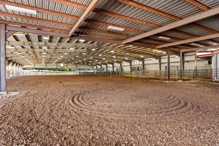 The Covered Warm-Up Arena measures 120' x 220' and is conveniently accessible from both arenas, making it ideal for warm-ups or as a versatile space for hosting events.